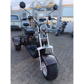 The CP3 is a stable three-wheel e-scooter equipped with a 40 Ah battery and a range of 60 to 90 km. It offers high riding comfort, safe handling, and practical features like lighting, mirrors, and a clear display – ideal for everyday use and leisure.Specifications: Model: CP-3 2000W 40Ah 45 km/h or 25km/h Motor Power: 2000WLithi..